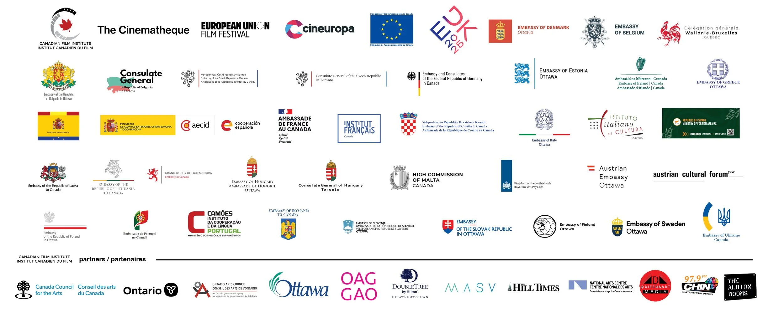 Nous remercions nos partenaires dans le cadre de cet important événement culturel annuel, qui célèbre aujourd'hui quatre décennies d'enrichissement cinématographique : la délégation de l'Union européenne au Canada et les États membres de l'UE participants. Nous remercions également les supporters comme vous qui ont rendu ce festival possible pendant ces quatre décennies !